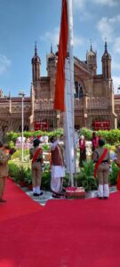 ध्वजारोहण के साथ सामूहिक राष्ट्र गान किया गया। संगीत विभाग के द्वारा कुलगीत एवं ध्वज वंदना किया गया।
