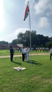 वाराणसी। डीएवी पीजी कॉलेज में शुक्रवार को 79 वाँ स्वतंत्रता दिवस समारोह धूमधाम से मनाया गया। महाविद्यालय के प्रबन्धक अजीत कुमार सिंह यादव एवं कार्यवाहक प्राचार्य प्रो. मिश्रीलाल ने तिरंगा फहराया। उसके बाद स्वतंत्रता के उत्सव में आजादी के प्रतीक स्वरूप तिरंगे गुब्बारें हवा में छोड़े गये। तत्पश्चात राष्ट्रगान कर सभी ने तिरंगे को सलाम किया। इस मौके पर एनसीसी प्रभारी मेजर प्रो. सत्यगोपाल जी के निर्देशन में एनसीसी कैडैटों ने प्रबन्धक एवं प्राचार्य को परेड की सलामी भी दी।