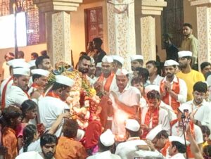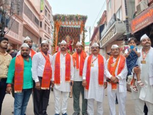 इससे पूर्व शेरवाली कोठी में श्री गणेश जी का मराठी पद्धति से विधि विधान से पूजा अर्चना किया गया। तत्पश्चात महाआरती किया गया। दोपहर में मुम्बई के सुप्रसिद्ध लालबाग का राजा की प्रतिमूर्ति श्रीगणेश जी को विभिन्न प्रकार के फूलों से सुसज्जित रथ पर विराजमान भक्तों ने कराया। समिति के अध्यक्ष आनंद राव सूर्यवंशी ने आरती उतारी।