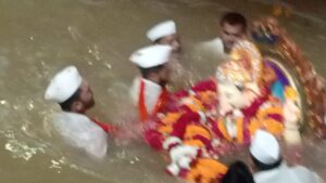 वाराणसी। शेरवाली कोठी में मुम्बई के सुप्रसिद्ध लालबाग का राजा श्रीगणेश जी का रविवार को लक्सा स्थित लक्ष्मी कुण्ड में विधि विधान से विसर्जन हुआ।