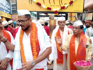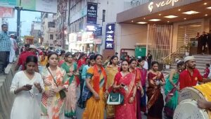 शोभायात्रा में शामिल भक्तगण पारम्परिक वेशभूषा सफेद महाराष्ट्र टोपी लगाए गणपति बप्पा मोरया के उद्घोष करते भव्य शोभायात्रा में शामिल चल रहे थे। शोभायात्रा में महिलाएं भी शामिल रही।
