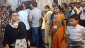 समाज संगठन के प्रदेश अध्यक्ष श्रीमती नीता सेन गुप्त के निर्देशन में समाज संगठन के सदस्यों ने मंदिर में आए हुवे भक्तगण को कतार लगवाकर दर्शन करवाया गया। भक्तों की लंबी कतार लगी रही। जो देर रात तक चलता रहा।