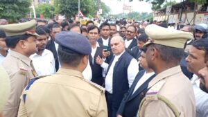 बस इसी बात से आक्रोषित अधिवक्ताओं ने चर्च चौराहे पर चक्काजाम कर दिया।