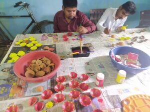 वाराणसी।कितने मनोयोग से,कितनी तल्लीनता से ये बौद्धिक दिव्यांग बच्चे, कोई एक हाथ से तो कोई दोनों हाथों से दीयों को कलर डिजाइन करने में मग्न, क्यों कि इन बच्चों का लक्ष्य है दीपावली, दीपावली पर अपनी कमाई से किसी को पटाखे फुलझड़ी लेनी है तो किसी को मनपसंद मिठाई।