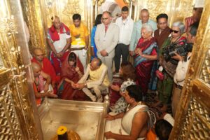 वाराणसी। मॉरीशस के प्रधानमंत्री डॉ नवीनचंद्र रामगुलाम वाराणसी दौरे के तीसरे दिन श्री काशी विश्वनाथ मंदिर में सपत्नी विधिवत दर्शन पूजन कर अभिभूत हुए। दर्शन पूजन के दौरान उनके साथ उत्तर प्रदेश की राज्यपाल आनंदीबेन पटेल, प्रदेश के वित्त एवं संसदीय कार्य तथा जनपद के प्रभारी मंत्री सुरेश खन्ना प्रमुख रूप से मौजूद रहे।