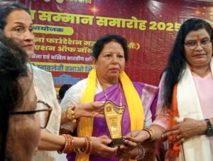 वाराणसी। लंका स्थित एक होटल के सभागार में शुक्रवार को अन्तर्राष्ट्रीय क्षत्रिय वीरांगना महासभा के तत्वावधान में आयोजित अन्तर्राष्ट्रीय वीरांगना सम्मान समारोह 2025 में काशी की तीन विभूति राधा सिंह (दिव्यांग जनसेवा), प्रियम्बदा सिंह (साहित्य सेवा), सुषमा सिंह (समाजसेवी) को अन्तर्राष्ट्रीय वीरांगना सम्मान 2025 से अंग वस्त्र, स्मृति चिन्ह देकर सम्मानित किया गया।
