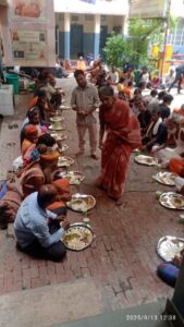 वाराणसी।दक्षिण भारत से निवासी श्रीमती लक्ष्मी कुमारी अपने स्वर्गीय पति रामा कृष्ण जी याद में पितृ पक्ष में मानसरोवर स्थित श्री राम तारक आंध्रा आश्रम के प्रांगण में दोपहर को दिन दुखियो एवं असहाय लोगों को भोजन करवाई।