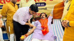 सेवा पर्व के दौरान मंत्री अनिल राजभर ने किया रक्तदान