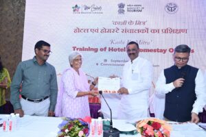 वाराणसी। पर्यटन मंत्रालय, भारत सरकार ने उत्तर प्रदेश पर्यटन विभाग और वाराणसी जिला प्रशासन के सहयोग से होटल और होमस्टे मालिकों के लिए हॉस्पिटैलिटी ट्रेनिंग वर्कशॉप का चौथा बैच शुक्रवार को आयोजित किया। यह प्रशिक्षण इंस्टीट्यूट ऑफ होटल मैनेजमेंट, लखनऊ द्वारा रेडिसन ग्रुप ऑफ होटेल्स के सहयोग से विस्तारित किया गया था। अगोडा द्वारा एक अलग कार्यशाला भी आयोजित की गई थी। मुख्य अतिथि महापौर अशोक तिवारी