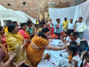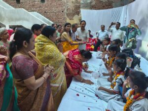 वाराणसी। श्री अग्रसेन जयंती सप्ताहव्यापी कार्यक्रम के तीसरे दिन बुधवार को भारतेन्दु भवन वाली गली चौखम्भा में बंगाली डॉढ़ी स्थित महारानी माधवी अग्रसेन भवन के नवसृजन कार्य का शुभारंभ हुआ। इस अवसर पर कन्या पूजन एवं सुंदरकांड का संगीतमय पाठ किया गया। श्री काशी अग्रवाल समाज के सभापति संतोष कुमार अग्रवाल और रंजना अग्रवाल ने सर्वप्रथम शक्ति की देवी स्वरूपा नौ कन्याओं के पाँव पखारे, पूजन किया और आरती की। इसके बाद सुंदरकांड का पाठ हुआ। कार्यक्रम के दौरान उन्होंने पक्के महाल में बच्चों के लिए अंग्रेजी स्कूल और युवाओं के लिए व्यवसायिक कौशल विकास कोर्स शुरू करने के उद्देश्य से शीघ्र काम पूरा करने की कामना की और माँ दुर्गा तथा महाबीर हनुमान जी से आशीर्वाद प्राप्त किया। अग्रवाल समाज की अग्रसेन महिला समिति की मालिनी चौधरी, अर्चना अग्रवाल, शालिनी अग्रवाल, माधुरी अग्रवाल, उषा अग्रवाल, राजकुमारी अग्रवाल, रजनी अग्रवाल, स्वयं प्रभा अग्रवाल, सुनीता अग्रवाल, उर्मिला अग्रवाल सहित सैकड़ों महिलाएं शक्ति स्वरूपा माता दुर्गा रूपी कन्याओं को चुनरी से श्रृंगार कर उपहार प्रदान किया और तत्पश्चात संगीतमय सुंदरकांड का सस्वर पाठ किया। हनुमान चालीसा पाठ और आरती के बाद प्रसाद का वितरण किया गया। कार्यक्रम में स्वागत समाज की प्रधानमंत्री डॉ. रचना अग्रवाल ने किया, संचालन दीपक अग्रवाल ने, संयोजन राजकिशोर चंद्र अग्रवाल ने और धन्यवाद ज्ञापन सलिल अग्रवाल ने किया। इस अवसर पर उपसभापति बल्लभदास अग्रवाल, शशि बाला साह, आर सी जैन, प्रद्युम्न अग्रवाल, आ मोद अग्रवाल, मनीष गुप्ता, दिव्य विभव बंसल, विनय अग्रवाल, अतुल गोयल, दिनेश अग्रवाल ‘चुनरी’ और चंद्र मोहन गर्ग, बजरंग अग्रवाल सहित समाज के सदस्य एवं पारिवारिकजन उपस्थित रहे।