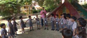 बच्चों को ‘इन आउट गेम्स, म्यूजिकल गेम्स, क्लेपिंग गेम्स, पास द फ्रूट्स, फ़्लैश कार्ड गेम के माध्यम से हेल्दी एवं उन्हेंल्थी फूड्स के बारे में बताया गयाl