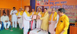 इस अवसर पर मुख्य अतिथि श्री नितिन भारत जी (प्रांत संगठन मंत्री विश्व हिंदू परिषद) ने श्रद्वेय अशोक सिंहल जी के जीवन पर प्रकाश डालते हुए कहा कि अलीगढ़ के प्रतिष्ठित परिवार में 27 सितंबर 1926 को इनका जन्म हुआ था बचपन से ही धार्मिक तथा साहसी थे विद्यार्थी जीवन में ही राष्ट्रीय स्वयंसेवक संघ के प्रचारक बने तथा बाद में विश्व हिंदू परिषद का दायित्व मिला यहां पर गौ रक्षा आंदोलन के साथ ही श्री राम जन्मभूमि आंदोलन का नेतृत्व करते हुए संपूर्ण विश्व के हिंदू समाज को संगठित किया उनकी अंतिम इच्छा घर-घर पहुंचे वैदिक शिक्षा थी इसके लिए अशोक जी काशी सदैव आते थे और यहां पर वैदिक विद्वानों के साथ बैठना तथा उनका सानिध्य प्राप्त करना होता था।