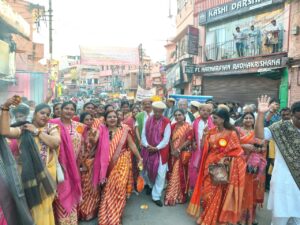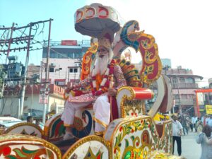 वाराणसी। श्री अग्रसेन जयंती समारोह के समापन अवसर पर रविवार को काशी अग्रवाल समाज की ओर से महाराज अग्रसेन की भव्य शोभायात्रा निकाली गई। बांसफाटक स्थित शापुरी माल से शुरू हुई शोभायात्रा काशी विश्वनाथ धाम, चौक, बुलानाला होते हुए श्री अग्रसेन पीजी कॉलेज पहुँची। घोड़ों पर 18 गोत्रों के स्वरूप, कन्याओं द्वारा कलश यात्रा और महालक्ष्मी स्वरूप रथ मुख्य आकर्षण रहे।
