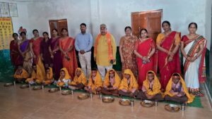 आजमगढ़। नारी शक्ति मिशन सरकार के मनसा अनुरूप जिले के पल्हनी शिक्षा क्षेत्र अंतर्गत हरिहरपुर कंपोजिट विद्यालय में विभिन्न कार्यक्रमो का आयोजन किया गया। अतिथियों द्वारा मां वीणावादिनि के चित्र के समक्ष दीप प्रज्वलित कर कार्यक्रम का शुभारंभ हुआ। जहां बतौर अतिथि पहुंचे खंड शिक्षा अधिकारी दिनेश कुमार वर्मा व पल्हनी अध्यक्ष डॉक्टर राजेश सिंह का प्रधानाध्यापक उपेंद्र दत्त शुक्ल के नेतृत्व में सम्मान किया गया। जिसके बाद नवरात्रि के इस पावन पर्व की अष्टमी तिथि के पावन पर्व पर विद्यालय की छात्राओं द्वारा गरबा डांडिया गीत पर शानदार नृत्य की प्रस्तुति की गई। जिसके बाद कन्या पूजन हुआ। जिसके क्रम में नौ कन्याओं का पैर पखार कर द्रव्य, वस्त्र भेंटकर भोजना कराया गया।