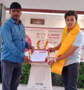 वाराणसी। प्रेमचंद मार्गदर्शन केंद्र लमही द्वारा आयोजित “सुनो मैं प्रेमचंद” श्रृंखला के 1693वें दिवस पर प्रसिद्ध कहानी कामना तरु का रंगमंचीय वाचन रंगकर्मी विकास यादव ने किया। कार्यक्रम का शुभारंभ प्रेमचंद की प्रतिमा पर माल्यार्पण से हुआ। इसके बाद कहानी की प्रस्तुति ने उपस्थित दर्शकों को प्रेमचंद की मानवीय संवेदना और सामाजिक यथार्थ से जोड़ा। इस अवसर पर निदेशक राजीव गोंड ने विकास यादव को सम्मानित किया। उन्होंने कहा कि सुनो मैं प्रेमचंद श्रृंखला प्रेमचंद की विचारधारा और उनकी कहानियों के माध्यम से समाज में नैतिक मूल्यों को सशक्त करने का कार्य कर रही है। कार्यक्रम में स्थानीय साहित्यकारों, विद्यार्थियों और समाजसेवियों ने सहभागिता की। सभी ने प्रेमचंद के साहित्य को जन-जन तक पहुँचाने के इस सतत प्रयास की सराहना की। इस अवसर पर सुर्यदीप कुशवाहा, राहुल यादव, अन्वित दूबे, चंदन, राहुल, विवेक, आदीत राय, अजय यादव रामजी सिंह, मेवालाल श्रीमाली, राहुल विश्वकर्मा, देव बाबू, प्रांजल कुमार, डा संजय श्रीवास्तव,आयुषी दूबे, मनोज विश्वकर्मा आदि थे।