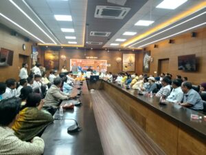 वाराणसी। उत्तर प्रदेश के स्टांप एवं न्यायालय पंजीयन शुल्क राज्य मंत्री (स्वतंत्र प्रभार) रविन्द्र जायसवाल ने जीएसटी काउंसलिंग की बैठक के क्रम में जीएसटी की दरों में 22 सितंबर से की गई कमी के लाभों एवं उससे व्यापार में वृद्धि से संबंधित लाभों से अवगत कराने एवं व्यापारी बंधुओ की समस्याओं के समाधान हेतु रविवार को कमिश्नरी सभागार में व्यापारियों के साथ बैठक की।