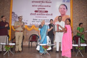 वाराणसी। कमिश्नरी ऑडिटोरियम में सोमवार को आयोजित आंगनवाड़ी केंद्रों को किट वितरण समारोह में उत्तर प्रदेश की राज्यपाल आनंदीबेन पटेल ने मुख्य अतिथि के रूप में प्रतिभाग किया। उन्होंने कार्यक्रम में उपस्थित लोगों को संबोधित करते हुए कहा कि लगातार महिलाओं, बच्चियों, गर्भवती महिलाओं के उत्थान हेतु कार्य किए जा रहे हैं। उन्होंने अपने पुराने कार्यकाल के दौरान 1998 में किए गए प्रयासों से जिससे महिला एवं बाल विकास विभाग प्रकाश में आया का उल्लेख किया। उन्होंने कहा कि मां बनने वाली बेटियों के हीमोग्लोबिन को चेक करने, पौष्टिक आहार का सेवन, मां के गर्भ में पहले महीने से नौवें महीने तक पल रहे शिशु के विकास हेतु गर्भ संस्कार जैसे कार्यक्रम आयोजित करने, आंगनवाड़ी केंद्रों में पूरा चार्ट लगाएं, जिससे की महिलाओं को किस महीने में बच्चे का कौन सा अंग विकसित होगा इसकी जानकारी हो सके।