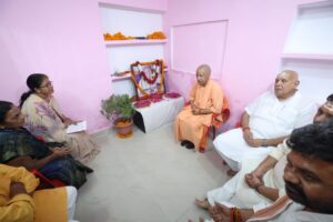 वाराणसी। उत्तर प्रदेश के मुख्यमंत्री योगी आदित्यनाथ वाराणसी दौरे के दौरान सोमवार को हिंदुस्तानी शास्त्रीय संगीत के दिग्गज पंडित छन्नूलाल मिश्र के आवास पर जाकर परिजनों से मिलकर उनके निधन पर श्रद्धांजलि अर्पित करते हुए संवेदना व्यक्त की। श्री मिश्र का विगत दिनों 91 वर्ष की आयु में निधन हो गया था। पंडित छन्नूलाल मिश्र भारतीय शास्त्रीय गायक भारत सरकार द्वारा सन 2020 में पद्म विभूषण से सम्मानित किया था। इनके निधन पर उनके आवास पर उनके चित्र पर पुष्प अर्पित कर श्रद्धांजलि दी।