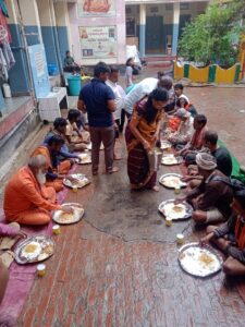दोपहर को सैकड़ों की संख्या में दिन दुखियो ने भोजन किए। जिसका संचालन आश्रम के प्रबंधक वी वी सीता राम जी कर रहे थे।