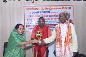 कार्यक्रम संयोजक चक्रवर्ती विजय नावड ने बताया कि इस अवसर पर समाज में उल्लेखनीय योगदान करने वाली 11 विशिष्ट विभूतियों को काशीराज डॉ विभूति नारायण सिंह अलंकरण से सम्मानित किया गया। जिनमें सर्वश्री रजत पाठक, पांडुरंग पुराणिक ,डॉक्टर पूजा दीक्षित, प्रोफेसर ओम प्रकाश शर्मा, , डॉ विजयलक्ष्मी सिंह ,स्वामी मुक्तानंद पुरी जी, श्रीमती कोमल सिंह ,श्रीमती मंजू सिंह, शिखा श्रीवास्तव ,रवि शंकर शर्मा ,श्रीमती राधा सिंह आदि का नाम शामिल है।इन सभीको मुख्य अतिथि पद्मश्री डॉ चंद्रशेखर सिंह, विश्व संस्कृत प्रतिष्ठानम की अध्यक्षा महाराजकुमारी कृष्णप्रिया ने अंगवस्त्रम एवं सम्मान पत्र देकर सम्मानित किया।