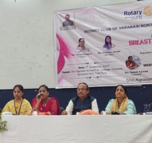 वाराणसी।रोटरी क्लब ऑफ वाराणसी नॉर्थ एवं रोटरी क्लब वाराणसी गंगा के संयुक्त तत्वावधान में श्री अग्रसेन कन्या पी.जी. कॉलेज, बुलानाला में राष्ट्रीय कैंसर जागरूकता दिवस के अवसर पर एक जागरूकता गोष्ठी का आयोजन किया गया।कार्यक्रम की शुरुआत मां सरस्वती की प्रतिमा पर माल्यार्पण एवं दीप प्रज्वलन के साथ हुई।