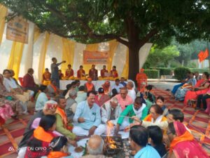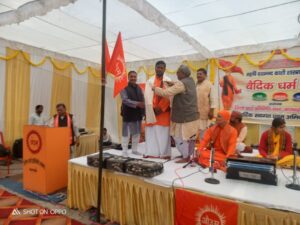 वाराणसी। महर्षि दयानन्द काशी शास्त्रार्थ के 156वें स्मृति वर्ष पर आयोजित दो दिवसीय वैदिक धर्म महोत्सव का द्वितीय दिवस आनन्द बाग, दुर्गाकुण्ड स्थित शास्त्रार्थ स्थली पर वैदिक यज्ञ के साथ आरम्भ हुआ। यज्ञ की ब्रह्मा पाणिनि कन्या महाविद्यालय की ब्रह्मचारिणियाँ रहीं, जबकि आचार्य ज्ञान प्रकाश वैदिक के आचार्यत्व में यजमान के रूप में महाराष्ट्र के आर्य समाज नांदेड़ से शंकर महाजन सपत्नीक उपस्थित रहे। सुल्तानपुर से आए युवा भजनोपदेशक राममिलन आर्य ने सुमधुर भजन प्रस्तुत किए। विधायक डा.नीलकंठ तिवारी और हिन्दू युवा वाहिनी के मंडल प्रभारी अम्बरीश सिंह भोला ने आर्य समाज के कार्यों की सराहना करते हुए समाजसेवियों व दानदाताओं को सम्मानित किया। भाजपा युवा नेता सुजीत मौर्य ने कहा कि महर्षि दयानन्द द्वारा प्रज्वलित वैदिक ज्ञान की ज्योति को आगे बढ़ाया जाएगा। हरिद्वार से पधारे स्वामी वेदामृतानन्द सरस्वती जी महाराज ने कहा कि परमात्मा हर कर्म को देखता-सुनता है और मनुष्य को सद्कर्म की प्रेरणा देता है। हरियाणा के डॉ. सुश्रुत सामश्रमी ने गायत्री मंत्र की महत्ता पर प्रकाश डालते हुए कहा कि बुद्धि का सदुपयोग ही मानवता का आधार है। अमेठी के डॉ. ज्वलन्त कुमार शास्त्री ने काशी शास्त्रार्थ की ऐतिहासिक घटनाओं का उल्लेख किया, वहीं डॉ. प्रियंवदा ने महर्षि के नारी सम्मान से जुड़े कार्यों को रेखांकित किया। संचालन जिला आर्य प्रतिनिधि सभा के प्रधान प्रमोद आर्य ‘आर्षेय’ ने किया। आभार प्रदर्शन राजकुमार आर्य ने तथा धन्यवाद ज्ञापन कोषाध्यक्ष प्रदीप आर्य ने किया।