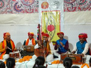 कहते हुए उन्होंने सर्वधर्म संदेश भी दिया। कार्यक्रम में मनोज घुड़ावद (नगाड़ा), देवी दास वैरागी (ढोलक), रामप्रसाद परमार (हारमोनियम) और उत्तम सिंह बामनिया (मंजीरा) ने संगत की। कुलपति प्रो. आनंद कुमार त्यागी ने कलाकार को शुभकामनाएँ दीं। ललित कला विभागाध्यक्ष डॉ. सुनील विश्वकर्मा ने कहा कि कबीर गायन का उद्देश्य मनोरंजन नहीं, बल्कि जीवन में ज्ञान की वृद्धि है।