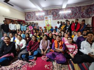 — गाते हुए छात्र-छात्राओं ने तालियों के साथ संगत की और हॉल भक्ति रस से गूँज उठा। उन्होंने समझाया कि गुरु के बिना ज्ञान संभव नहीं और भजन के बिना जीवन की अंधेरी दुनिया पार नहीं की जा सकती।