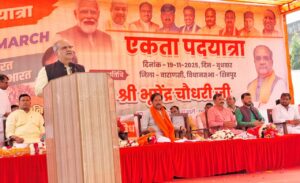 जनसभा को संबोधित करते हुए प्रदेश अध्यक्ष भूपेन्द्र चौधरी ने कहा कि सरदार वल्लभभाई पटेल ने 562 रियासतों का विलय कर भारत के अखंड स्वरूप को गढ़ा। उनकी जनभावना और राष्ट्रनिष्ठा को जन-जन तक पहुँचाना ही इस पदयात्रा का उद्देश्य है। सरदार पटेल की 150वीं जयंती पर आयोजित यह यात्रा समाज के हर वर्ग को एक सूत्र में जोड़ने का संदेश देती है। पदयात्रा में तिरंगा यात्रा, भारत माता की जय के उद्घोष और सरदार पटेल अमर रहें के नारों ने माहौल को देशभक्ति से भर दिया।