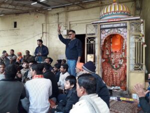 कीर्तन भजन करते नृत्य की मुद्रा में भक्तगण शामिल हुए।जय श्री राम जय श्री राम के भजन पर खूब थिरके।