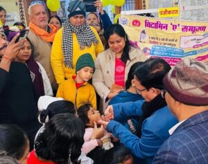 वाराणसी। जनपद में नौनिहालों को कुपोषण से मुक्त रखने के लिए ‘विटामिन ए सम्पूरण’ कार्यक्रम बाल स्वास्थ्य पोषण माह का शुभारंभ शुक्रवार को शहरी सामुदायिक स्वास्थ्य केंद्र दुर्गाकुण्ड पर मुख्य चिकित्सा अधिकारी डॉक्टर संदीप चौधरी ने बच्चों को विटामिन ए की खुराक पिलाकर किया।यह अभियान 26 दिसम्बर से 24 जनवरी तक चलेगा| ग्रामीण एवं शहरी स्वास्थ्य स्वच्छता एवं पोषण दिवस (वीएचएसएनडी व यूएचएसएनडी) सत्रों के जरिये 9 माह से 5 वर्ष तक के 3.92 लाख बच्चों को विटामिन ए की खुराक पिलायी जायेगी।