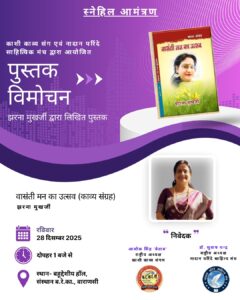 वाराणसी। रविवार को दोपहर एक बजे,बरेका स्थित बहुउद्देशीय हाल में झरना मुखर्जी व्दारा लिखित काव्य संग्रह पुस्तक वासंती मन का उत्सव का लोकार्पण समारोह आयोजित किया गया है।