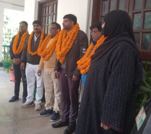 वाराणसी। उत्तर प्रदेश चतुर्थ श्रेणी राज्य कर्मचारी महासंघ की शनिवार को आयोजित बैठक में समस्त विभाग के पदाधिकारी एवं कर्मचारी उपस्थित हुए और द्विवार्षिक वार्षिक चुनाव पर विचार विमर्श किया। तदुपरान्त चुनाव अधिकारी प्रदेश कार्यवाहक अध्यक्ष कमला सिंह पटेल एवं प्रांतीय उपाध्यक्ष सुखिया बानो के देखरेख में संपन्न हुआ। जिसमें विजय कुमार बाबा जिलाध्यक्ष एवं बृजेश कुमार कार्यवाहक अध्यक्ष, शिव कुमार राम जिला उपाध्यक्ष, विजय यादव जिला मंत्री, संदीप कुमार कोषाध्यक्ष, विनोद कुमार सिंह जिला ऑडिटर निर्वाचित हुए।