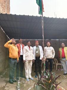 रियल मीडिया फाउण्डेशन के राष्ट्रीय अध्यक्ष डा पंकज श्रीवास्तव, इण्डियन एसोसिएशन ऑफ जनर्लिस्ट (आईएजे) के राष्ट्रीय अध्यक्ष डा कैलाश सिंह विकास व मुख्य अतिथि प्रो ओमप्रकाश शर्मा (वरिष्ठ रेडियोलॉजिस्ट) विशिष्ट अतिथि डा सुबाष चंद्र (संस्थापक अध्यक्ष, नादान परिंदे साहित्य मंच) व पदाधिकारी गण संग ध्वजारोहण किया।