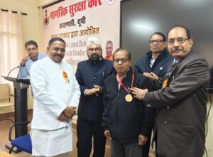 वाराणसी। नागरिक सुरक्षा प्रधान कार्यालय चेतगंज में गणतंत्र दिवस समारोह धूमधाम से मनाया गया। उप नियंत्रक जितेन्द्र देव सिंह ने झंडा फहराया। इस अवसर पर विशिष्ट कार्य के लिए डिवीजन वार्डेन संजय कुमार राय, कन्हैया लाल,वीवी सुन्दर शास्त्री, डिप्टी डिवीजनल वार्डेन अरविन्द विश्वकर्मा, अभिषेक जायसवाल, समेत दस वार्डेन और स्वयंसेवकों को विशिष्ट कार्य के लिए उप नियंत्रक नागरिक सुरक्षा जितेन्द्र देव सिंह, सहायक उप नियंत्रक इरफानुल होदा, विवेक कुमार और चीफ वार्डेन विनोद गुप्ता ने मेडल से सम्मानित किया किया। संचालन एडीसी इरफानुल होदा ने किया।
