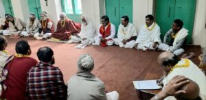 सभा की अध्यक्षता प्रसिद्ध पौराणिक ब्रजवल्लभ पाठक जी ने की। आपने समस्त विपत्तियों से बचते हुये लक्ष्य की सिद्धि हेतु भगवान श्री कृष्ण जी के द्वारा उपदिष्ट कल्याणकारी मार्ग देवता ,ब्राह्मण और गाय की पूजा करने की आवश्यकता पर विस्तार से चर्चा की।