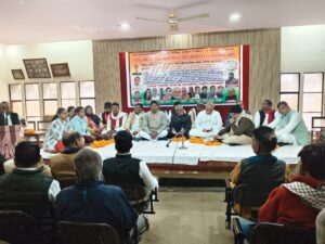 वाराणसी।रविवार को मैदागिन स्थित पराड़कर स्मृति भवन के सभागार में भारतीय सबका दल व भारत बचाओ मोर्चा की तरफ से आयोजित किया गया, जिसकी अध्यक्षता मा० कृष्ण नारायण सोनी व संचालन भारतीय सबका दल के राष्ट्रीय अध्यक्ष मा० ईश्वर दयाल सिंह सेठ जी ने अपना विचार व्यक्त करते हुए कहा की पूर्वाचल वासियों के लिए पूर्वांचल राज्य की आज बहुत जरुरत है और पूर्वाचल की राजधानी वाराणसी, प्रयागराज, गोरखपुर में से कोई एक होनी चाहिए तभी पूर्वांचल का विकास संभव है, साथ ही साथ भारत के हर व्यक्ति को 2000/- रु० प्रति माह वोटर-शिप या वोटर पेंशन भत्ता दिया जाना चाहिए ताकि राम राज्य की परिकल्पना साकार हो। भगवान् विश्वकर्मा के वंशजो तथा शिल्पकारों के लिए विश्वकर्मा पञ्च शिल्पी आयोग का गठन होना चाहिए और बाबा काशी विश्वनाथ की नगरी में महान संत नरहरी दास जी का भव्य गेट व मूर्ति की भी स्थापना की जानी चाहिए ताकि स्वर्णकार समाज को आत्मीय गौरव अनुभूत हो।