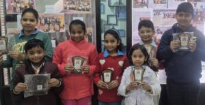 विजेता आराध्या कुमारी,वेद सिंह और श्रेयांश,उन्मय प्रजापति,अद्वविका यादव संस्था के अध्यक्ष श्री विजय अग्रवाल ने सभी विजेता छात्र छात्राओं को सील्ड देकर पुरस्कृत किया ।