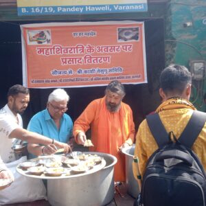 वाराणसी।महाशिवरात्रि पर्व पर पाण्डेय हवेली पर तेलेगु समाज के सदस्यों ने शिवभक्तो को फलाहारी वितरित किया गया।जो सुबह से लेकर देर शाम तक कार्यक्रम चलता रहा।