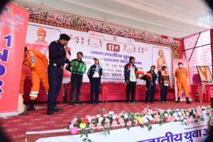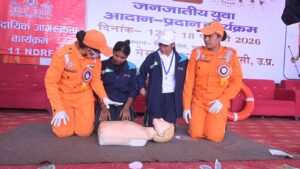 कार्यक्रम के प्रथम सत्र में राष्ट्रीय आपदा प्रतिक्रिया बल (एनडी – आरएफ) बटालियन, वाराणसी द्वारा प्रतिभागियों को विभिन्न प्रकार की आपदाओं से बचाव एवं सुरक्षा उपायों की विस्तृत जानकारी प्रदान की गई।