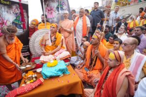 वाराणसी।परमाराध्य परमधर्माधिश ज्योतिष्पीठाधीश्वर जगदगुरू शंकराचार्य स्वामिश्री: अविमुक्तेश्वरानंद: सरस्वती जी महाराज द्वारा उत्तरप्रदेश सरकार को 40 दिन के अंदर गौमाता को राज्यमाता घोषित कर प्रदेश में पूर्णतया गोकशी प्रतिबंधित करने हेतु दिए गए समयावधि के 35 दिन पूर्ण होने पर छत्रपति शिवाजी महाराज के जन्म जयंती पर शुक्रवार को काशी के शंकराचार्य घाट पर विशेष कार्यक्रम का आयोजन किया गया।जिसके अंतर्गत सर्वप्रथम ज्योतिष्पीठाधीश्वर शंकराचार्य जी महाराज ने विधिवत गंगापूजन किया।