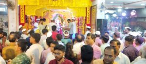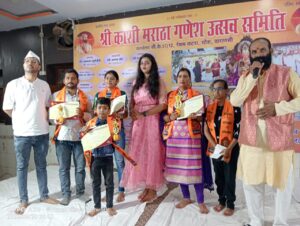 वाराणसी।आसभैरो स्थित अग्रवाल भवन में श्री काशी मराठा गणेश उत्सव समिति द्वारा आयोजित पांच दिवसीय श्रीगणेश उत्सव समारोह के दूसरे दिन बुधवार को सुबह समिति के अध्यक्ष आनंद सूर्यवंशी व सभी पदाधिकारियों व सदस्यों के साथ लालबाग का राजा श्री गणेश जी विधिवत श्रृंगार किया। तथा मोदक का भोग लगाया। महाआरती सकलडीहा के विधायक प्रभु नारायण सिंह ने की, साथ ही समाज में सुख शांति की कामना की।