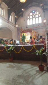 पूजन समारोह में देवी के भक्तिमय संगीत से गुंजायमान रहा।