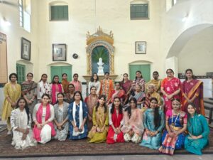 तत्पश्चात् स्वागत वक्तव्य डॉ. शान्ता चटर्जी, विभागाध्यक्षा, संस्कृत विभाग द्वारा प्रस्तुत किया गया। उन्होंने सभी अतिथियों एवं प्रतिभागियों का हार्दिक अभिनन्दन करते हुए कार्यक्रम की रूपरेखा एवं उसके महत्व पर प्रकाश डाला।इसके पश्चात् शास्त्रीय नृत्य की आकर्षक प्रस्तुति स्नातकोत्तर प्रथम वर्ष की छात्रा प्रतिष्ठा द्वारा दी गई, जिसने अपनी अभिव्यक्ति, ताल एवं लय के माध्यम से दर्शकों को मंत्रमुग्ध कर दिया।कार्यक्रम का अगला आकर्षण ‘श्रीराम स्तुति’ रहा,। संस्कृतमातृमण्डलम् की अध्यक्षा डॉ. कमला पाण्डेय के निर्देशन में प्रशिक्षित छात्राओं द्वारा सामूहिक रूप से सभी गेय छन्दों में प्रस्तुत किया गया।