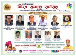 प्रतापगढ़। जनपद के वरिष्ठ साहित्यकार एवं समाजसेवी ज्ञान विभूषण डॉ. विनय कुमार श्रीवास्तव को आगामी 5 अप्रैल 2026 को गुजरात के बलसाड़ स्थित हार्टफुलनेस ध्यान योग प्रशिक्षण केंद्र में आयोजित भव्य समारोह में ‘राष्ट्रीय गुजरात गौरव सम्मान-2026’ से सम्मानित किया जाएगा।