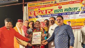 समारोह की अध्यक्षता लोक साहित्य भूषण डा जयप्रकाश मिश्र, संचालन हास्य कवि नागेश शांडिल्य धन्यवाद प्रकाश जनार्दन शांडिल्य ने किया।