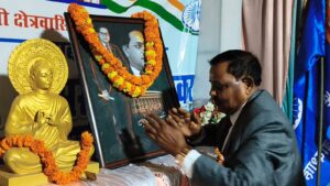 मुख्य अतिथि सहित उपस्थित जन ने बाबा साहब को माल्यार्पण कर दीप प्रज्ज्वलित किया।