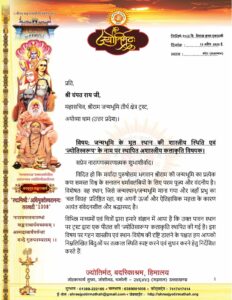 उन्होंने विश्वास जताया कि ट्रस्ट अपनी इस भूल को सुधारते हुए यथाशीघ्र शास्त्रीय मर्यादा की पुनः स्थापना करेगा और मूल स्थान के विषय में भक्तों के बीच उत्पन्न हो रही भ्रान्ति का निवारण करेगा।