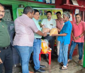 वाराणसी।रोटरी क्लब वाराणसी शिवगंगा ने गांधी व शास्त्री जयंती के अवसर पर सोमवार को सेवा अभियान के तहत संकट मोचन मंदिर मार्ग स्थित श्री काशी विश्वनाथ कुष्ठ आश्रम में क्लब की ओर से सदस्यों ने आश्रम में रहने वाले कुष्ठ रोगियों की आवश्यकता को ध्यान में रखते हुए चावल, दाल, चीनी, चना, तेल सब्ज़ियाँ, फल आदि के साथ चार कुर्सियाँ प्रदान की। इससे पूर्व सदस्यों ने गांधी जी की मूर्ति पर माल्यार्पण कर उन्हें श्रद्धांजलि अर्पित की। साथ ही अहिंसा के मार्ग पर चलने का संकल्प दोहराया।