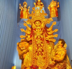 वाराणसी। अर्दली बाजार स्थित न्यू डी-लाइट क्लब दुर्गा पूजा समिति के पूजा पंडाल में शुक्रवार को देर शाम प्राण प्रतिष्ठा से पूजा समारोह का शुभारंभ हुआ। पंडाल में दर्शनार्थियों की खासी भीड़ रही। प्रतिमा में मां दुर्गा की गोद में श्री गणेश, कार्तिकेय,मां लक्ष्मी और मां सरस्वती गोद में विराजमान हैं। प्रतिमा के उपर ब्रम्हा, विष्णु और महेश है। पंडाल को कोयम्बतूर तमिलनाडु के आदियोगी शिव मंदिर का प्रतिरूप प्रदान किया गया है। क्षेत्र में आकर्षक विद्युत सजावट मुख्य आकर्षण का केन्द्र है। न्यू डी-लाइट क्लब दुर्गा पूजा समिति के अध्यक्ष मनोज कुमार अच्छू,संरक्षक संजय श्रीवास्तव मोले,अशोक सिंह,संजय विश्वकर्मा के अनुसार दर्शनार्थियों को वापसी में हनुमान जी की विशाल प्रतिमा का दर्शन होगा। सुरक्षा व्यवस्था के लिए सीसीटीवी कैमरे और वायलेटिंयर तैनात किया गया है। अग्निशमन की व्यवस्था है।